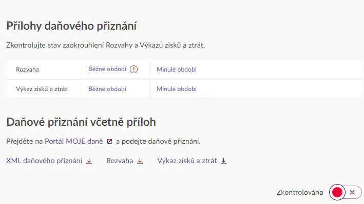 Oba výkazy jsou automaticky součástí XML dokumentů, které budete nahrávat na portál Moje daně. V Evale si výkazy můžete prohlédnout v menu Reporty.
