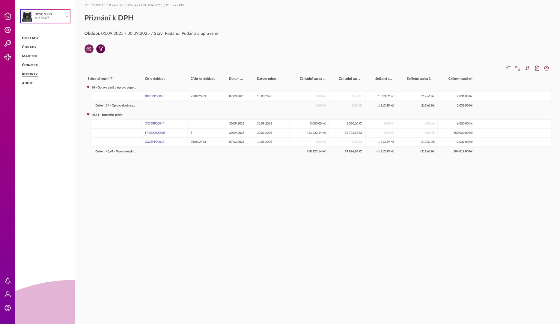 - Po potvrzení vrácení DPH se změna proúčtuje na úrovni jednotlivých dokladů a v sekci Doklady v tomto období bude nově uvedeno, které doklady byly zahrnuty do celkového počtu dokladů spadající do přiznání DPH za toto období jako opravy. Toto je dále možné měnit po kliknutí na příslušný odkaz pomocí akce zrušení vrácení DPH.